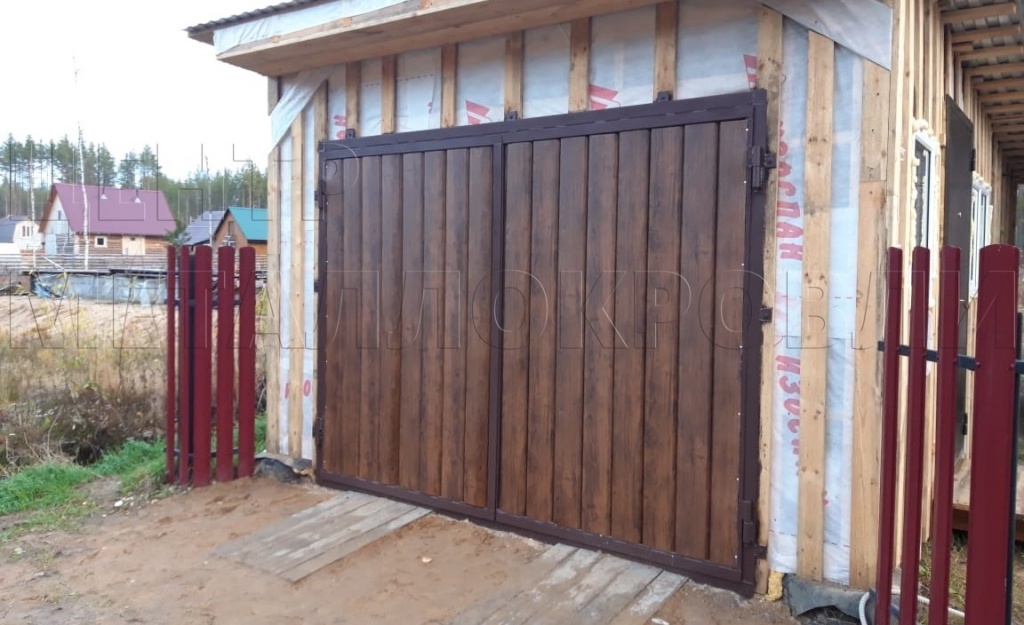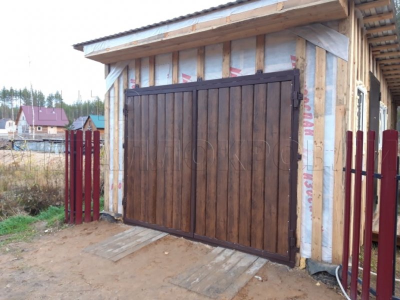 Сыктывкар Ворота гаража металлосайдинг Евро-Брус Каштан