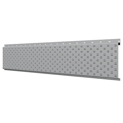 Линеарная потолочно-стеновая панель с ПЕРФОРАЦИЕЙ для вентиляции цвет RAL7004 Серый применяется в качестве софитов для подшивы крыши, наружной и внутренней отделки потолков, стен, фронтонов фасада дома в Перми.