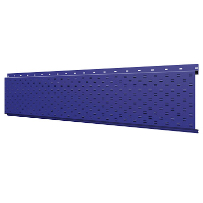 Линеарная потолочно-стеновая панель с ПЕРФОРАЦИЕЙ для вентиляции цвет RAL5002 Синий Ультрамарин применяется в качестве софитов для подшивы крыши, наружной и внутренней отделки потолков, стен, фронтонов фасада дома в Перми.