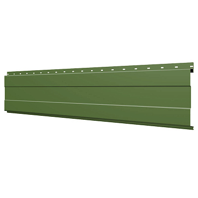 Линеарная потолочно-стеновая панель с ПОЛОСОЙ усиленная цвет RAL6002 Зеленый Лист применяется в качестве софитов для подшивы крыши, наружной и внутренней отделки потолков, стен, фронтонов фасада дома в Перми.